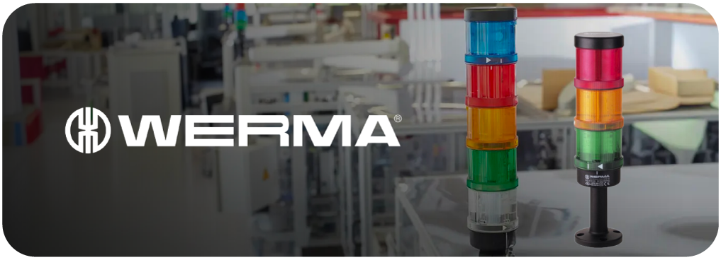 WERMA supports this via the 646.840.55. It is an IO-Link base station which is mounted between the individual luminaires and the socket intended for mounting the tower to the machine.