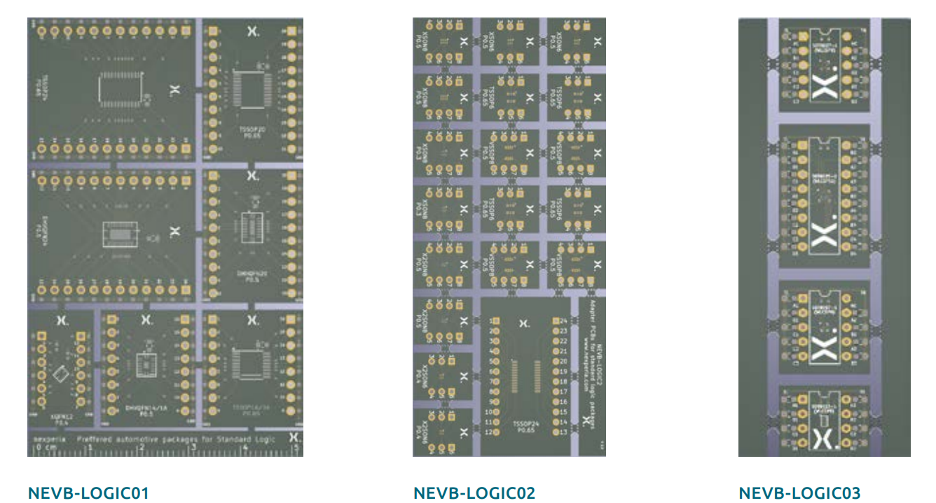 Nexperia approaches this by providing three sets of DIP-to-SMD adapters. Printed circuit board set number one goes by the name NEVB-LOGIC01 and can mate with the following surface mount housings: