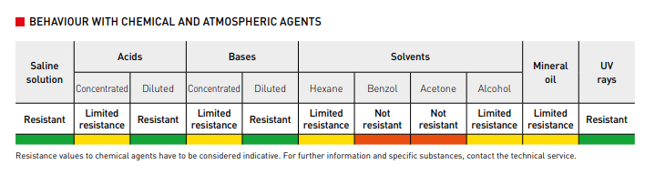 The 512.3257-7 is compatible with a variety of solvents, mineral oils, and other chemicals. Thus, the 512.3257-7 can be used in harsh environmental conditions. Of course, a detailed consultation with the SCAME technical service is required before deployment in a chemically saturated atmosphere.